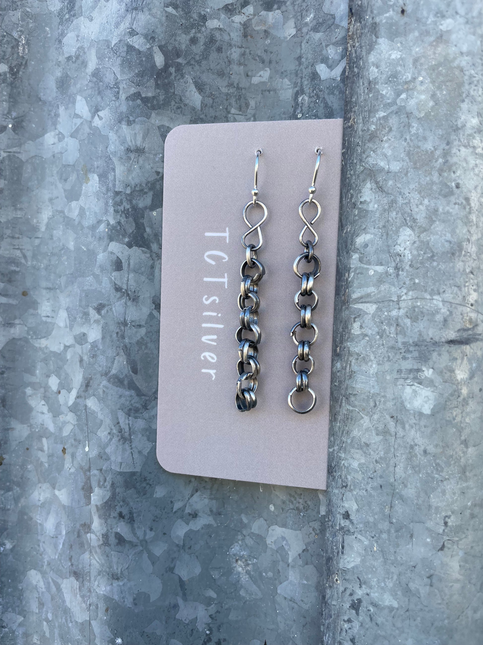 Expertly crafted from sterling silver, the Rein Chain Earrings combine elegance and durability. The lightweight design ensures comfort for all-day wear. Add a touch of sophistication to your outfit with these statement earrings.
